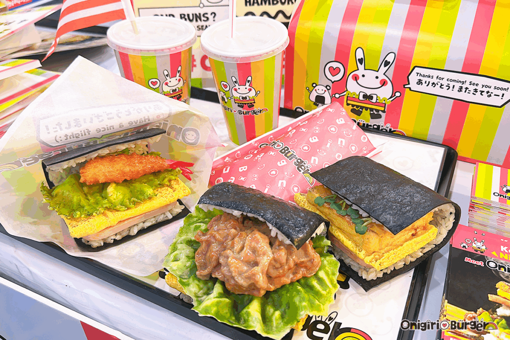 "인터내셔널 프랜차이즈 엑스포 뉴욕 (이하 IFE) '재팬 파빌리온에 설치한 OnigiriBurger 부스에서는 유니폼이나 캡을 비롯해 OnigiriBurger의 레인보우 컬러와 로고, 캐릭터를 다룬 브랜드의 세계관을 구현하는 각종 파 케이지류(주먹밥 버거 봉투, 테이크 아웃 박스, 모서리 바닥의 종이 봉투, 음료 컵, 아이스 컵, 사이드 메뉴 봉투)를 전시.또, 일람 메뉴나 대기 번호표 등, 업태 운영에 필요한 아이템을 일식 풀 라인 업으로 소개했습니다.
